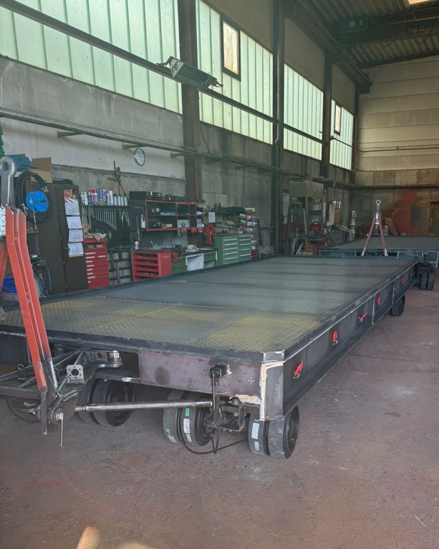 Diese beiden Industrieanhänger des Typ 70-4 mit Allrad-Achsschemellenkung sind kurz vor der Endmontage und der damit einhergenden Lackierung und somit unmittelbar vor dem Versand in ein deutsches Kraftwerk. Diese Anhänger sind mit einer speziellen Schraubendruckfederung ausgestattet und werden noch mit einer kostspieligen Dekontlackierung aufbereitet. Dieser Stammkunde wird nun bereits seit fast 30 Jahren mit den Anhängern "made in Germany" beliefert und befindet sich aktuell im Rückbau der nuklearen Betriebsanlagen.